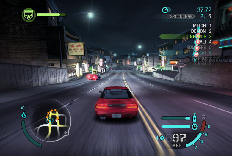 Hinzu kommt, dass in der Stadt vergleichsweise wenig los ist. Gerade weil die Atmosphäre des Spiels ansonsten sehr gelungen ist, fällt das umso mehr auf. Der Verkehr ist stark begrenzt und auch abseits der Rennstrecken gibt es nur wenige Details in der Spielwelt. Möglicherweise liegt das auch am enormen Entwicklungsdruck jener Zeit: Black Box und Electronic Arts veröffentlichten damals nahezu jährlich einen neuen Need-for-Speed-Teil, jeweils mit besserer Grafik, neuen Features, mehr Fahrzeugen und erweiterten Tuningmöglichkeiten. Dieses Pensum war langfristig vermutlich kaum noch vollständig auszureizen, weshalb auch hier möglicherweise etwas wegrationalisiert wurde.